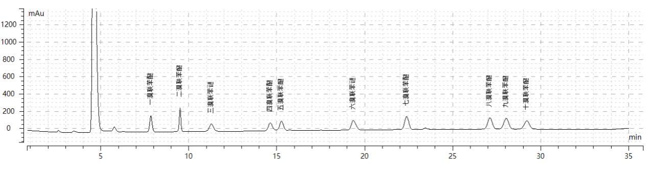 全自动一体高效液相色谱仪专为RoHS 2.0和电器电子产品有害物质检测需求设计,通过全自动一体高效液相色谱仪参考相应标准,可检测以下有害物质,有害物质测试谱图效果如图1~图8所示。