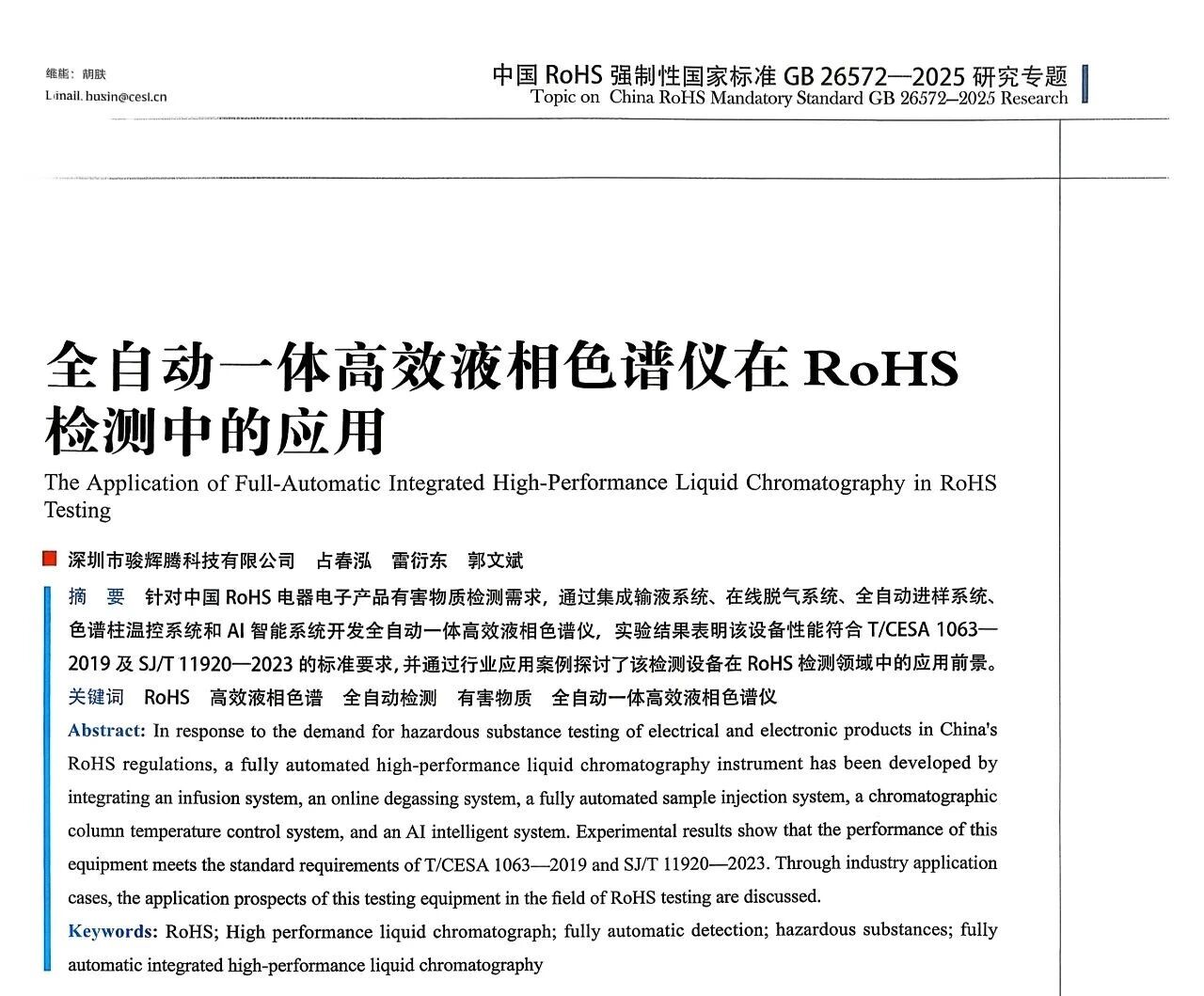 本文发表在《信息技术与标准化》2025年10月刊《中国RoHS强制性国家标准GB 26572—2025研究专题》中。